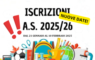 Annalisa2025-09-16T15:47:44+02:00A seguito della comunicazione avvenuta da parte del Ministero dell’istruzione riguardo l’apertura delle iscrizioni, abbiamo modificato la data di apertura ai genitori del portale delle iscrizioni on line al 21 gennaio 2025 dalle ore 8.00. Dal 21 gennaio 2025, quindi, è possibile iscrivere i bambini alla scuola dell'infanzia e alla [...]